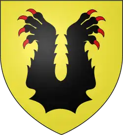 Armes attestées: D'or, à l'aigle de sable, membrée, becquée et armée de gueules Armes attribuées: D'or, à l'aigle de sable, membrée, becquée et armée de gueules ; sur-le-tout d'or aux trois lions passant de sable[58]. |