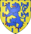 écartelé en 1 et 4 de sable, au lion d'or, armé, lampassé et couronné de gueules et en 2 et 3 fuselé en bande d'azur et d'argent[10]. |