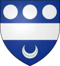 d'azur à la fasce accompagnée en chef de deux besants et en pointe d'un croissant, le tout d'argent.[7] |