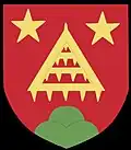 de gueules à deux écôts d'or passés en sautoir (accompagnés de trois étoiles du même, une en chef et deux aux flancs, et d'un mont de sinople à trois coupeaux issant en pointe).[2] |