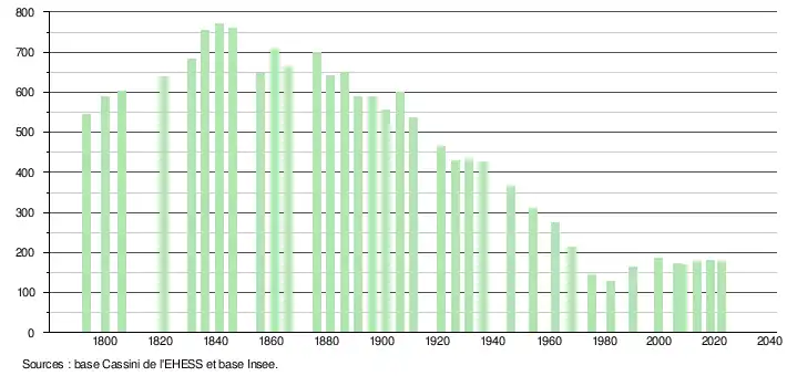 - ↑ Population municipale de référence en vigueur au 1er janvier 2025, millésimée 2022, définie dans les limites territoriales en vigueur au 1er janvier 2024, date de référence statistique : 1er janvier 2022.