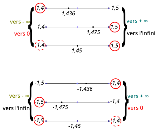 - L'arrondi au plus proche à 10−1 près de −1,43 est −1,4.