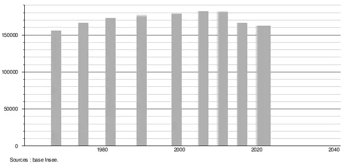 - ↑ Population selon le sexe et l'âge quinquennal de 1968 à 2013 - Recensements harmonisés - Séries départementales et communales
