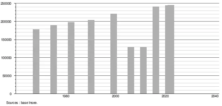 - ↑ Population selon le sexe et l'âge quinquennal de 1968 à 2013 - Recensements harmonisés - Séries départementales et communales