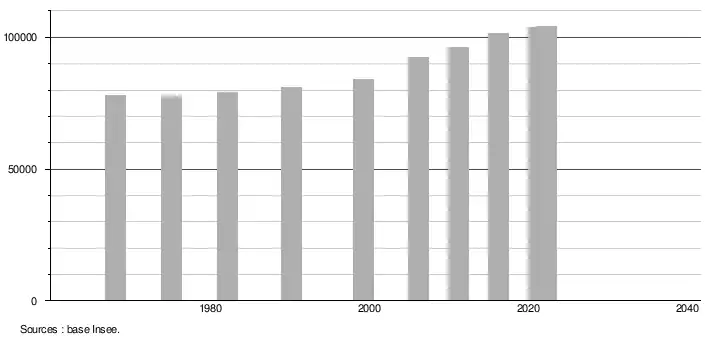 - ↑ Population municipale de référence en vigueur au 1er janvier 2025, millésimée 2022, définie dans les limites territoriales en vigueur au 1er janvier 2024, date de référence statistique : 1er janvier 2022.