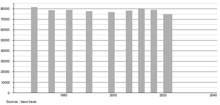 - ↑ Population selon le sexe et l'âge quinquennal de 1968 à 2013 - Recensements harmonisés - Séries départementales et communales