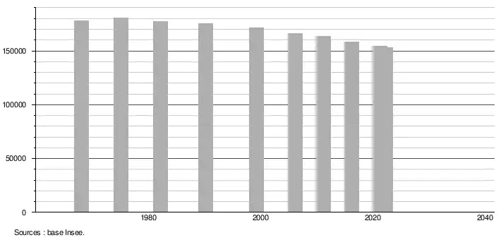 - ↑ Population selon le sexe et l'âge quinquennal de 1968 à 2013 - Recensements harmonisés - Séries départementales et communales