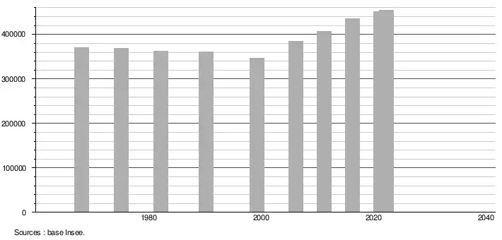 - ↑ Population selon le sexe et l'âge quinquennal de 1968 à 2013 - Recensements harmonisés - Séries départementales et communales