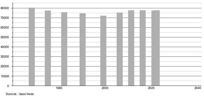 - ↑ Population selon le sexe et l'âge quinquennal de 1968 à 2013 - Recensements harmonisés - Séries départementales et communales
