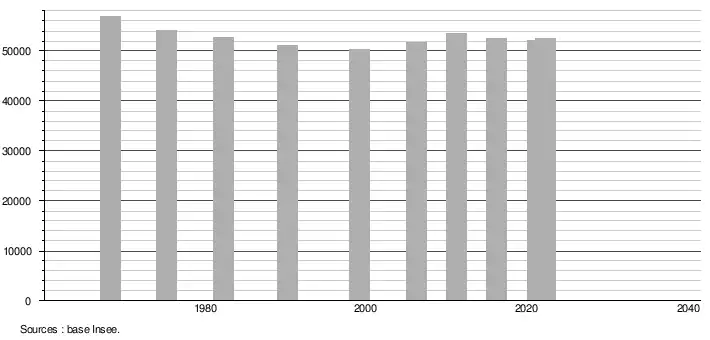 - ↑ Population selon le sexe et l'âge quinquennal de 1968 à 2013 - Recensements harmonisés - Séries départementales et communales