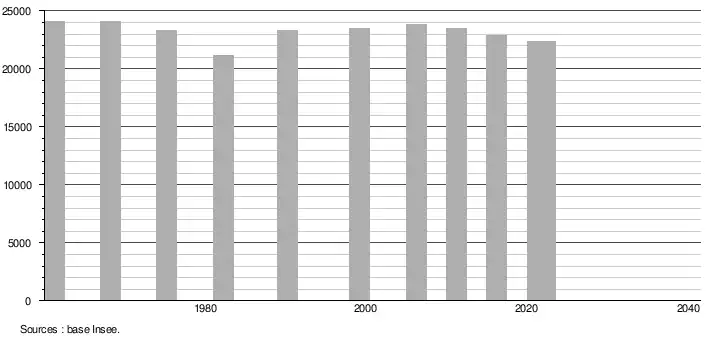 - ↑ Population selon le sexe et l'âge quinquennal de 1968 à 2013 - Recensements harmonisés - Séries départementales et communales