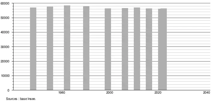 - ↑ Population selon le sexe et l'âge quinquennal de 1968 à 2013 - Recensements harmonisés - Séries départementales et communales