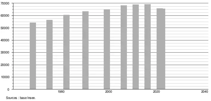 - ↑ Population selon le sexe et l'âge quinquennal de 1968 à 2013 - Recensements harmonisés - Séries départementales et communales