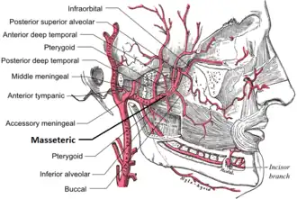 L'artère massétérique est une branche du deuxième segment de l'artère maxillaire. Elle vascularise le muscle masséter.