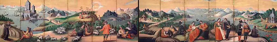 - ↑ Okamoto, Yoshitomo, The Namban Art of Japan, Weatherhill, (ISBN 0-8348-1008-5)