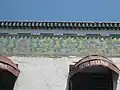 On note que l'architecte a introduit des frises de faïences d'inspiration locale dans la partie supérieure des bâtiments[4].