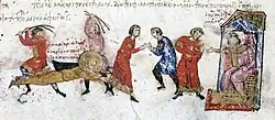 Son fils, Constantin V dit Copronyme (« au nom d'ordure »), poursuit la politique de son père en matière religieuse : en 756, le concile réuni au palais de Hiéreia décide non seulement de condamner à mort toute personne prise à vénérer, posséder ou fabriquer des icônes, et interdit la vénération des reliques. Des personnages éminents sont alors exécutés, comme le patriarche Germain et saint Étienne le jeune, chefs des iconodoules.