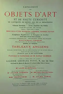 - Catalogue des objets d'art et de haute curiosité de l'Antiquité́ et du Moyen Âge, de la Renaissance et autres... formant la collection de M. Arthur Sambon, Galerie Georges Petit, Paris, 1914.