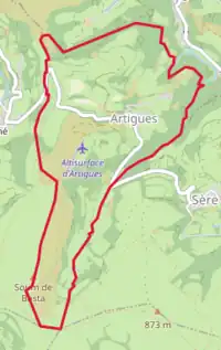 - ↑ « Orthodromie entre Artigues et Lourdes », sur fr.distance.to (consulté le ).