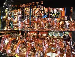 Alors que le cuivre est travaillé dans certaines parties de la Mésoamérique, la tradition mexicaine moderne est d'origine espagnole[28]. Les conquistadors espagnols ont initialement ignoré le travail du cuivre, alors qu'ils cherchent de l'or et de l'argent. Il n'est pas expédié en Espagne autant que les deux autres. Au lieu de cela, il devient finalement important pour la création d’articles utilitaires, en particulier d’articles domestiques tels que casseroles et poêles[14]. Aujourd'hui, le centre du travail du cuivre traditionnel au Mexique est l'État de Michoacán, en particulier la municipalité de Santa Clara del Cobre. Un objet en cuivre martelé traditionnel est un grand récipient dans lequel de la graisse de porc est fondue ou du sucre caramélisé pour la fabrication de bonbons. Chaque année au mois d'août, Santa Clara del Cobre organise un festival du cuivre[29].