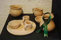 Des artisans de Metepec, dans l’État de Mexico, fabriquent des miniatures en argile noire vernissée, la plupart décorées de motifs peints en or et en rouge. Acatlán, dans l'état de Puebla fabrique des ustensiles de cuisine mexicains antiques, miniatures, en céramique[35]. À Oaxaca, les jouets en bois traditionnels sont coupés grossièrement, ou sculptés et peints. Arrosula fait une figure avec un chapeau de charro appelé « gallero » (manieur de coq) avec des bras mobiles. Elle est généralement accompagnée de répliques de coqs dont les queues sont en ixtle. Salitla, dans l'état de Guerrero fabrique des jouets en bois, principalement des animaux, peints en rouge-vin ou en magenta, qui comprennent des lapins, des oiseaux, des fleurs, des fruits et des feuilles. Ixtapan de la Sal et Tonatico, dans l’État de Mexico, fabriquent des animaux à partir d’un bois local blanc. Les jouets en bois sont particulièrement populaires à Michoacán. À Paracho, ils fabriquent des toupies, des bilboquets, des yo-yos et des dreidels. La plupart sont fabriqués à partir de bois appelé tzirimu, le même bois que celui utilisé traditionnellement pour fabriquer des canoës et des filets de pêche dans la région du lac de Pátzcuaro. Tizatlán, dans la ville de Tlaxcala fabrique un Mikado dans du bois de cognassier[36].
