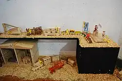 Dans l’État de Morelos, des bâtiments miniatures sont construits, notamment dans les régions de Cuernavaca et Tepoztlán. Ceux-ci incluent des maisons, des châteaux, des églises et des cabanes, utilisant des matériaux de rebut tels que des restes de bois, des épines et d’autres matériaux végétaux. Aguascalientes fabrique des scènes de boxeurs ou de combattants en métal dont les mouvements simulent un combat. San Miguel de Allende fabrique des figurines de soldat et de musicien à partir de tôle peinte de couleurs vives. À Mexico et à Oaxaca, une grande variété de figurines animales et autres sont fabriquées en tôle, notamment des coqs, des chevaux et des papillons peints à l'émail[36]. Santa Clara del Cobre fabrique des pots, des casseroles et des plats miniatures en cuivre. Des soldats miniatures en plomb et d'autres personnages sont fabriqués à Puebla, Celaya, Guadalajara et Mexico[24]. Guadalajara fabrique des jouets en verre tels que des sets de vaisselle, des pièces de poupée et des figurines d'animaux. Le verre peut être coloré ou clair. Alfayucan, Puebla et la vallée du Mezquital (en) à Hidalgo tissent des figurines à partir de feuilles de palmier, de roseaux, de bâtons minces et de pailles pour fabriquer des objets tels que des petits oiseaux, des paniers et des berceaux[37]. Des pots en argile en forme de cochons et d'autres animaux et sont fabriqués dans des endroits tels que Tlaquepaque et Santa Cruz de las Huertas, Jalisco, dont certains des meilleurs produits sont fabriqués par Julio Acero de cette dernière ville[12]. Des artisans de San Cristóbal de las Casas et de Berriozábal fabriquent des jouets traditionnels[13].