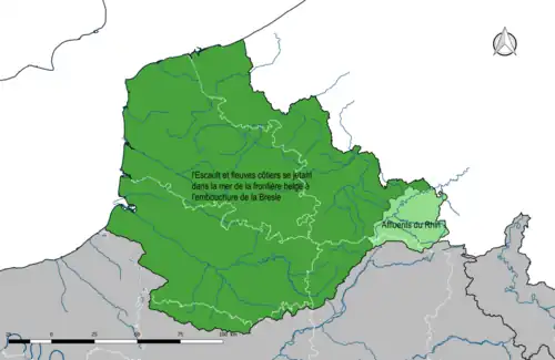Le bassin comprend deux sous-bassins administratifs : Escault et Sambre. Ils constituent un niveau intermédiaire d'agrégation entre la masse d'eau et le bassin Directive cadre de l'eau, à savoir le district hydrographique. Ils ont été mis en œuvre fin 2008 à la demande de la Commission européenne pour des objectifs de rapportage et de visualisation au sein de WISE (Water Information System for Europe)[4].