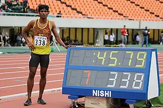 Le 31 octobre 2018, il porte son record personnel à 45 s 78 à Colombo.