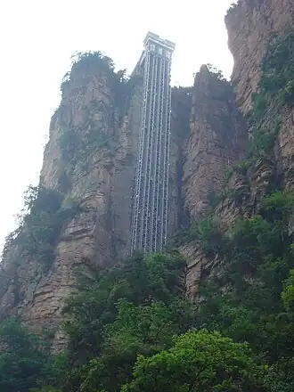 - ↑ (en) « Breathtaking cliff face elevator in China recognised as world’s tallest outdoor lift », sur Guinness World Records (consulté le )
