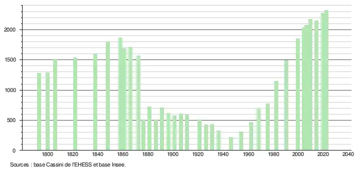 - ↑ Fiches Insee - Populations de référence de la commune pour les années 2006, 2007, 2008, 2009, 2010, 2011, 2012, 2013, 2014, 2015, 2016, 2017, 2018, 2019, 2020, 2021 et 2022.