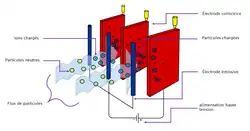 Un précipitateur électrostatique, également appelé collecteur électrostatique, séparateur électrique ou séparateur électrostatique, est un dispositif dans lequel les particules deviennent chargées et sont précipitées sur la surface collectrice du précipitateur[3].