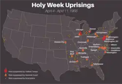L'assassinat provoque une vague d'émeutes raciales dans soixante villes des États-Unis (125 au total[6]) qui fait de nombreux morts et nécessite l'intervention de la Garde nationale[7].