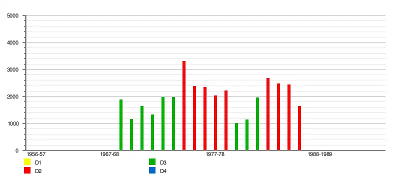 | Division 3 (1975-1984) | 5 | 0 | 1 | 150 | 64 | 38 | 48 | 190 | 167 | +23 |