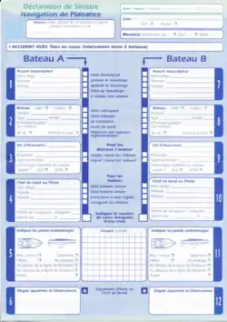 En cas d'incident entre 2 navires ou si éperonnage, le constat juridique rédigé par l'équipage porte le nom de "rapport de mer". Il est transmis à la compagnie d'assurance, aux armateurs éventuels (propriétaires), et est consigné dans le livre-de-bord.