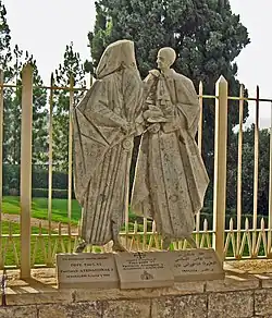 Groupe sculpté commémorant la rencontre de Paul VI et d'Athénagoras.