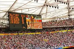 Vue du stade, départ de la série du 110 m haies avec Liu Xiang