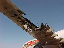 Aux alentours de 9 000 pieds (soit environ 2 700 m), après trois minutes de vol, un missile sol-air 9K32 Strela-2 (SAM-7)[3] touche l'Airbus sur le bout de son aile gauche[1]. Le missile endommage la structure de l'avion, perçant l'un des réservoirs de kérosène, ce qui provoque une fuite qui s'enflamme rapidement[1]. Le missile cause également une fente de 5 mètres sur le longeron arrière de l'aile, et perfore les trois circuits hydrauliques de l'appareil. Ces circuits, au nombre de trois afin de pallier la panne éventuelle du premier, voire du deuxième circuit, servent à commander l'avion. Ils permettent notamment de diriger l'appareil (gestion des ailerons, gouvernes de profondeur et de direction), de sortir les volets, ainsi que le train d'atterrissage[1].