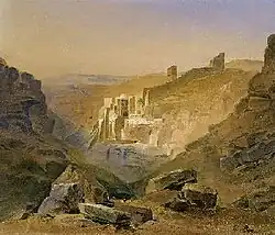 - Le monastère de Mar Saba dans le désert de Judée, aquarelle, vers 1849.