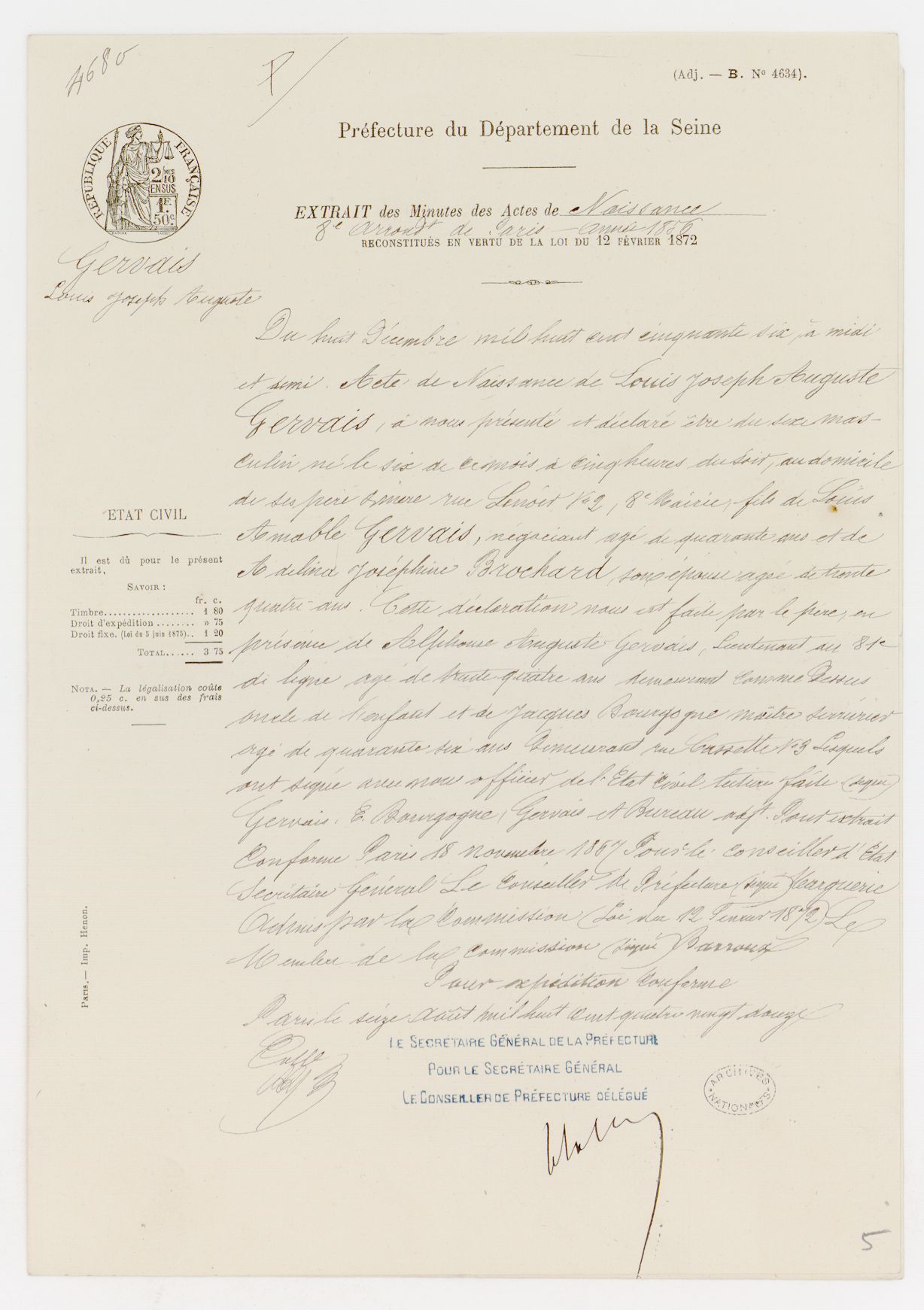 | Nom de naissance | Louis Joseph Auguste Gervais |