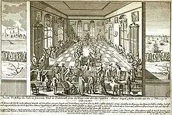 - ↑ En anglais : Accurate representation of Governor's House in Portsmouth, where court-martial of English Admiral Keppel took place 11 Feb 1779