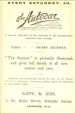 Le lancement de The Autocar remonte au 2 décembre 1895, sous l'impulsion de l'ingénieur britannique et grand amateur de cyclisme Henry Sturmey (en), associé à l'éditeur de presse Iliffe and Son Ltd, « dans l'intérêt du transport routier à propulsion mécanique », alors qu'on estime qu'il n'y avait, à cette époque, que six ou sept automobiles dans tout le Royaume-Uni. Dans son livre, Drive On![3] L. J. K. Setright suggère que le magazine a été mis en place par Sturmey avant tout comme support promotionnelle de l'entreprise de Harry J. Lawson, fondateur de la Daimler Motor Company et lui-même collaborateur du magazine à ses débuts. Sturmey, nommé rédacteur en chef du magazine, quitte son poste en 1901, après une série de blessures lors de courses cyclistes[4]. Dans l'histoire des magazines consacrés à cette invention, le précède La Locomotion automobile fondée en décembre 1894 par le Touring-Club de France[5].