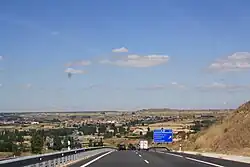 - Après 150 km, l'autoroute arrive à Aranda de Duero où elle va croiser l'A-11 encore en construction pour Valladolid vers l'ouest et Soria vers l'est.