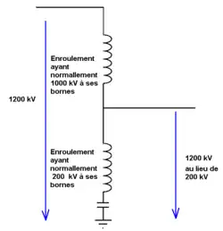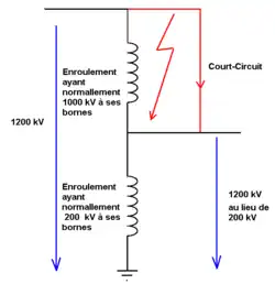 - le courant de court-circuit d'un autotransformateur est significativement plus élevé que celui d'un transformateur classique[8].