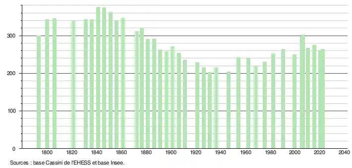 - ↑ Fiches Insee - Populations de référence de la commune pour les années 2006, 2007, 2008, 2009, 2010, 2011, 2012, 2013, 2014, 2015, 2016, 2017, 2018, 2019, 2020, 2021 et 2022.