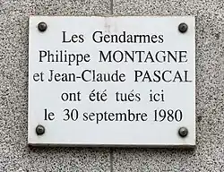 - ↑ « Mémorial des Gendarmes Français Victimes du Devoir.: Philippe Montagné et Jean-Claude Pascal 30 septembre 1980 », sur Mémorial des Gendarmes Français Victimes du Devoir. (consulté le )