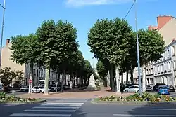 Avenue Marx-Dormoy. Vue en direction de la gare, avec le monument à Marx Dormoy.