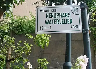 Le , le collège décida de renommer la voie rue des Nénuphars pour éliminer un doublon avec une autre rue existante à Etterbeek. Les nénuphars étaient présents en nombre dans les eaux de l’étang de Valduchesse.