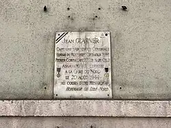 Elle rend hommage au capitaine d'artillerie Jean Louis Lazare Glarner, fusillé en 1944[2]. Le 20 août 1944, chargé d'arrêter Gustave Lesesne, son véhicule est intercepté par des soldats allemands, et il est immédiatement abattu. Le 25 du même mois, il fut inhumé au cimetière parisien de Saint-Ouen, puis ré-inhumé à Marseille[3].