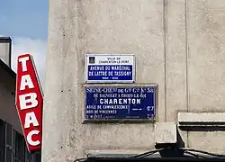 - ↑ " 6 mètres avant Paris " Av. du Maréchal-de-Lattre-de-Tassigny - Charenton-le-Pont, rue Gravelle - Paris, Bois de Vincennes