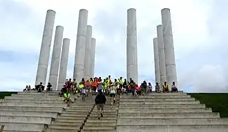 Les douze colonnes de béton, au bout de l'Esplanade de Paris, sont hautes de 12 mètres de béton blanc[11]. Cylindriques et creuses, elles sont disposées en deux groupes de trois par deux de part et d'autre de l'Axe, et constituent un point de rupture entre les vastes étendues menant à la Tour Belvédère en pente douce, et la raide déclivité descendant vers l'Oise au sud-est[12].